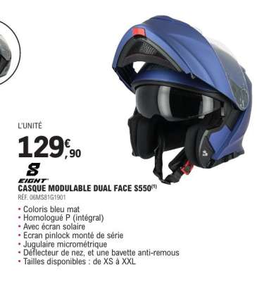 Vous trouverez le produit casque moto pour seulement 54,90 € à E.Leclerc. Cette offre spéciale est valable du 02/12 au 27/12/2025. Si vous souhaitez acheter le produit casque moto, rendez-vous dans votre magasin E.Leclerc le plus proche.